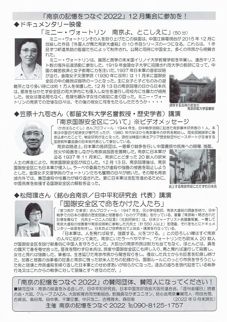 主催 南京の記憶をつなぐ2022 ℡090-8125-1757