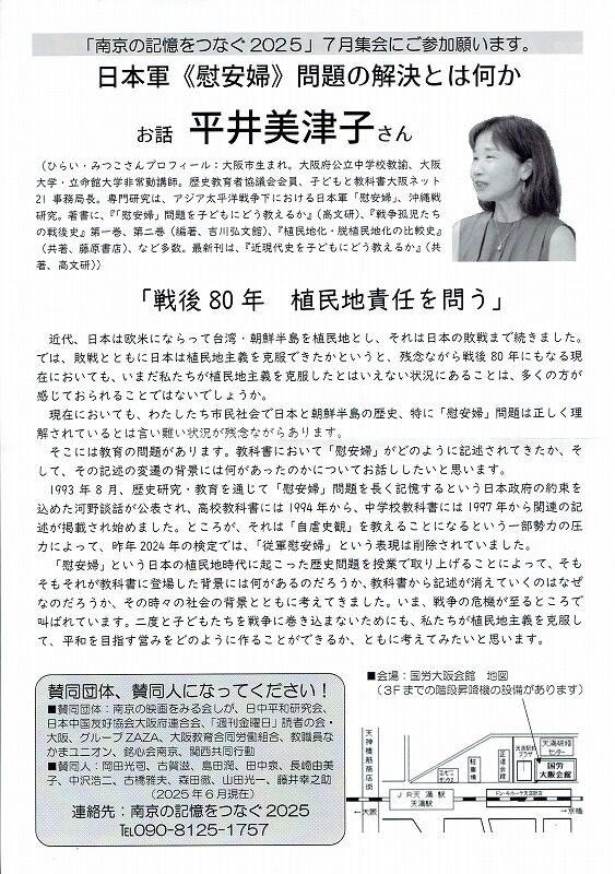 主催:南京の記憶をつなぐ2025 ℡090-8125-1757