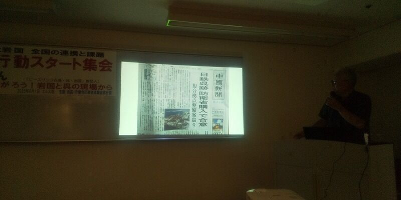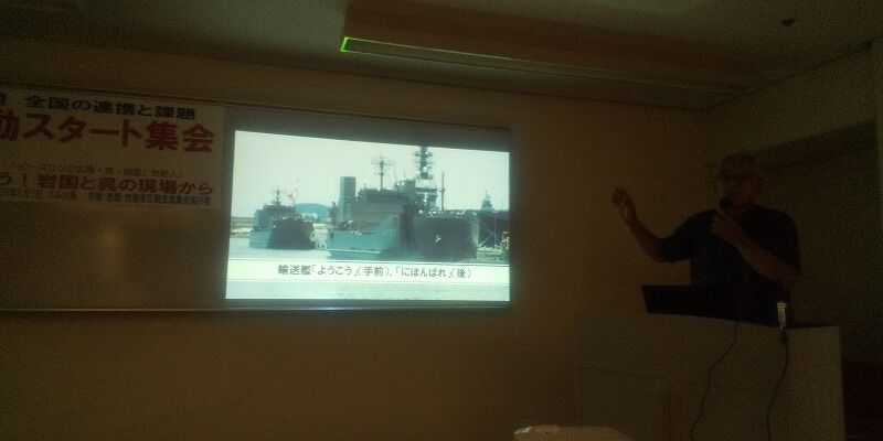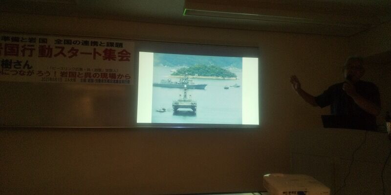 また土砂搬出現場、安和、塩川、そして宮城嶋の闘いが紹介された。宮城嶋ではこれまで土取場から40分かけて港から搬出していたが、県の抗議を無視して運搬時間が10分程度の民間の桟橋から搬出するようになった。