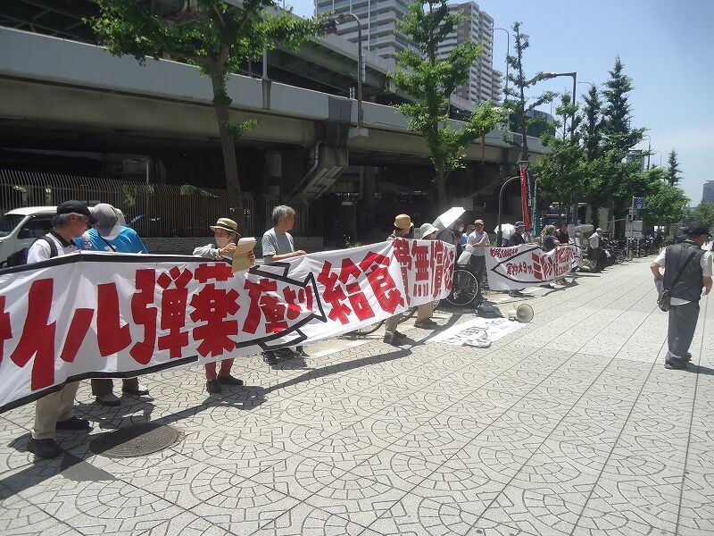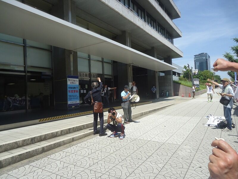 車両が出入りするのが、9時、12時、15時の3回、その都度、機動隊によって排除される。ただ、6月23日は総理大臣などの要人警護で機動隊がだせず、工事のほうが止めってしまう。機動隊に守られていないと、工事ができないのだ。