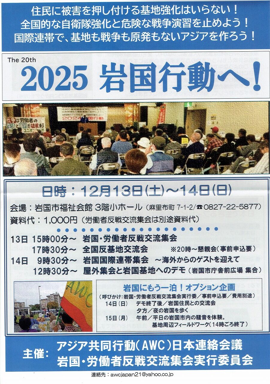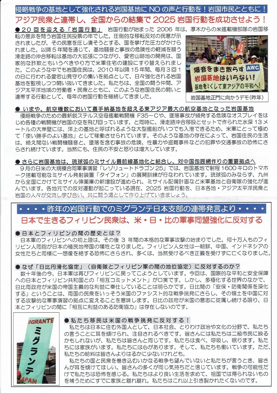 岩国行動2日目の続き…3日目に行く前に…通常の「岩国行動」は土曜の午後の集会から、日曜午後のデモまでなのだが、今回は20年ということもあり、その後の「オプション企画」が用意された。