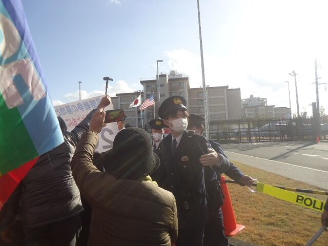 米軍用地をはさんだ向こう側に岩国市の土地があり、そこに行くための道路があるのが、途中米軍によって普段は閉鎖されている(法的根拠なし)。そこで車をUターンさせる。