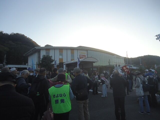大阪からバスで高浜まで…高浜原発が見える展望公園で前段集会。