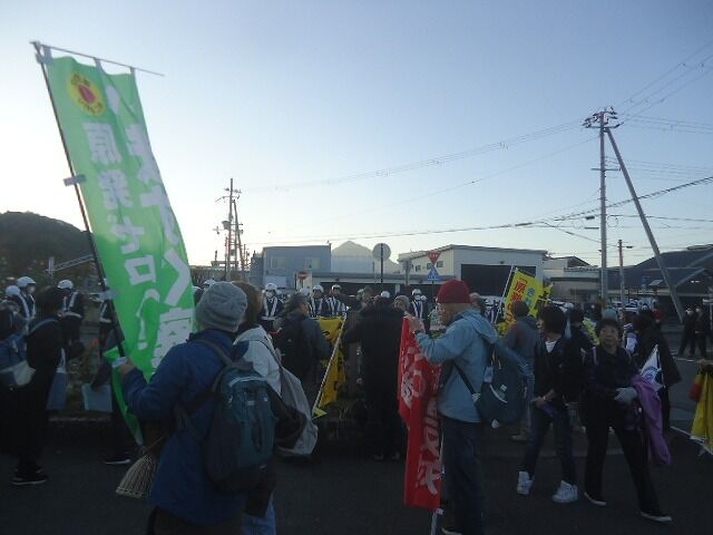 ゲート前で、抗議のシュプレヒコール!