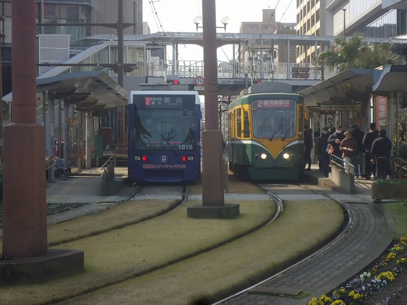 博多乗り鉄で博多宿泊、翌22日に新幹線で鹿児島入り…まずは駅前の鹿児島市電電停へ。