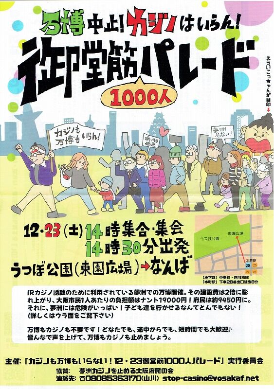 主催:「カジノぼ万博もいらない!12・23御堂筋1000人パレード」実行委員会