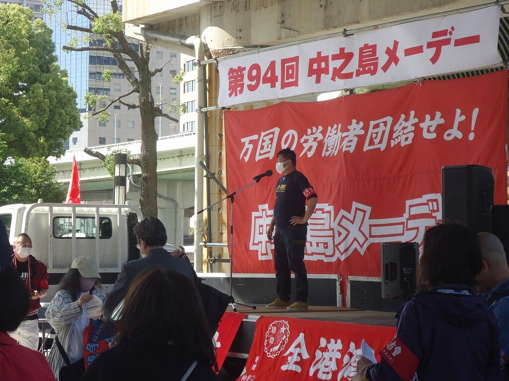 大阪・関西万博の”惨状”やトランプ政治などを取り上げ、誰も責任をとらない政治を弾劾した後、私たちは隣にいる仲間を信じて闘っていこうと、主催のあいさつ。