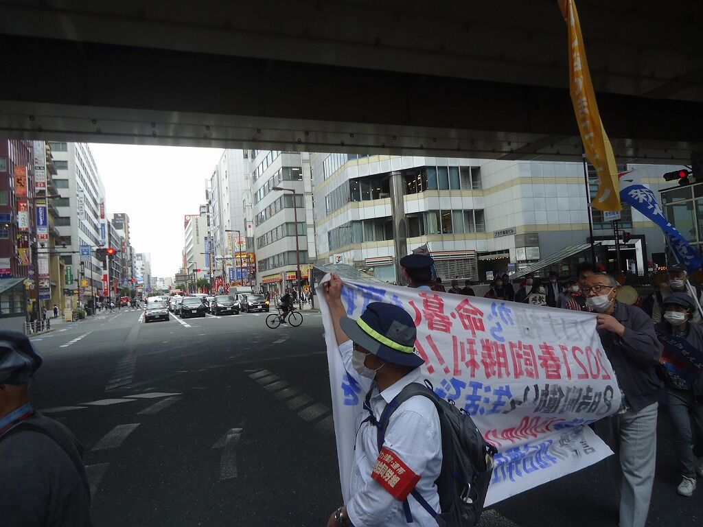 米領事館前を過ぎて、デモは進む…「米が高いぞ」「なんでも高いぞ」「生活できない、給料上げろ」「最賃も上げろ、1500円に上げろ」