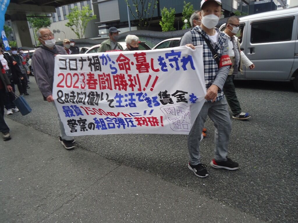 大阪地裁・高裁前を通るので、「関生弾圧」の不当判決を糾弾する意味で、裁判所を弾劾するコールがたたきつけられる!「裁判所は法律を守れ!」「組合活動を犯罪にするな!」