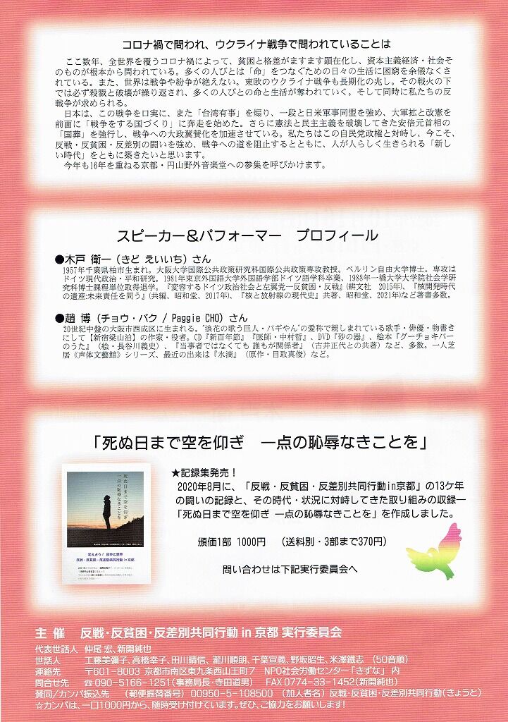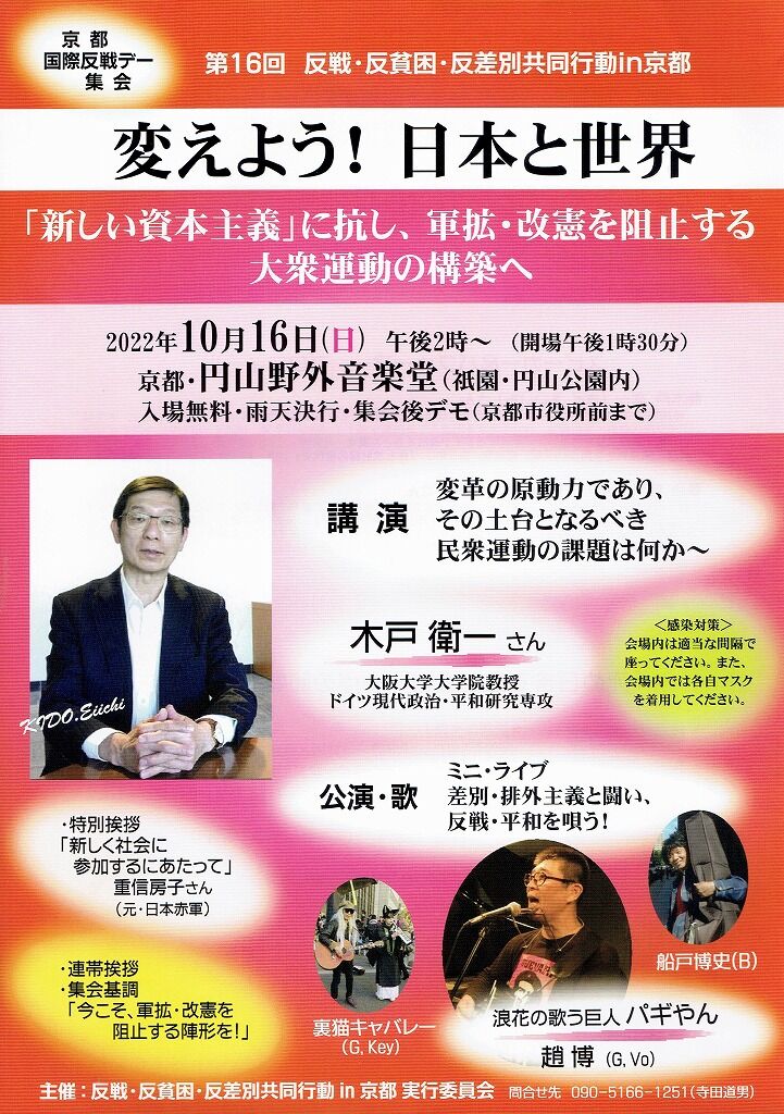 理解することは難しくても、想像して欲しい…本当の民主主義はあるのだろうか?政治を変える、自民党を変えないといけない。自民党は統一協会とアメリカによって支えられている。これと対抗する野党を作るのは、これから。私もその一人として参加したい。異議のある人も話をしたいと、再出発についての思いをおだやかに語られ、大きな拍手が起こった。
