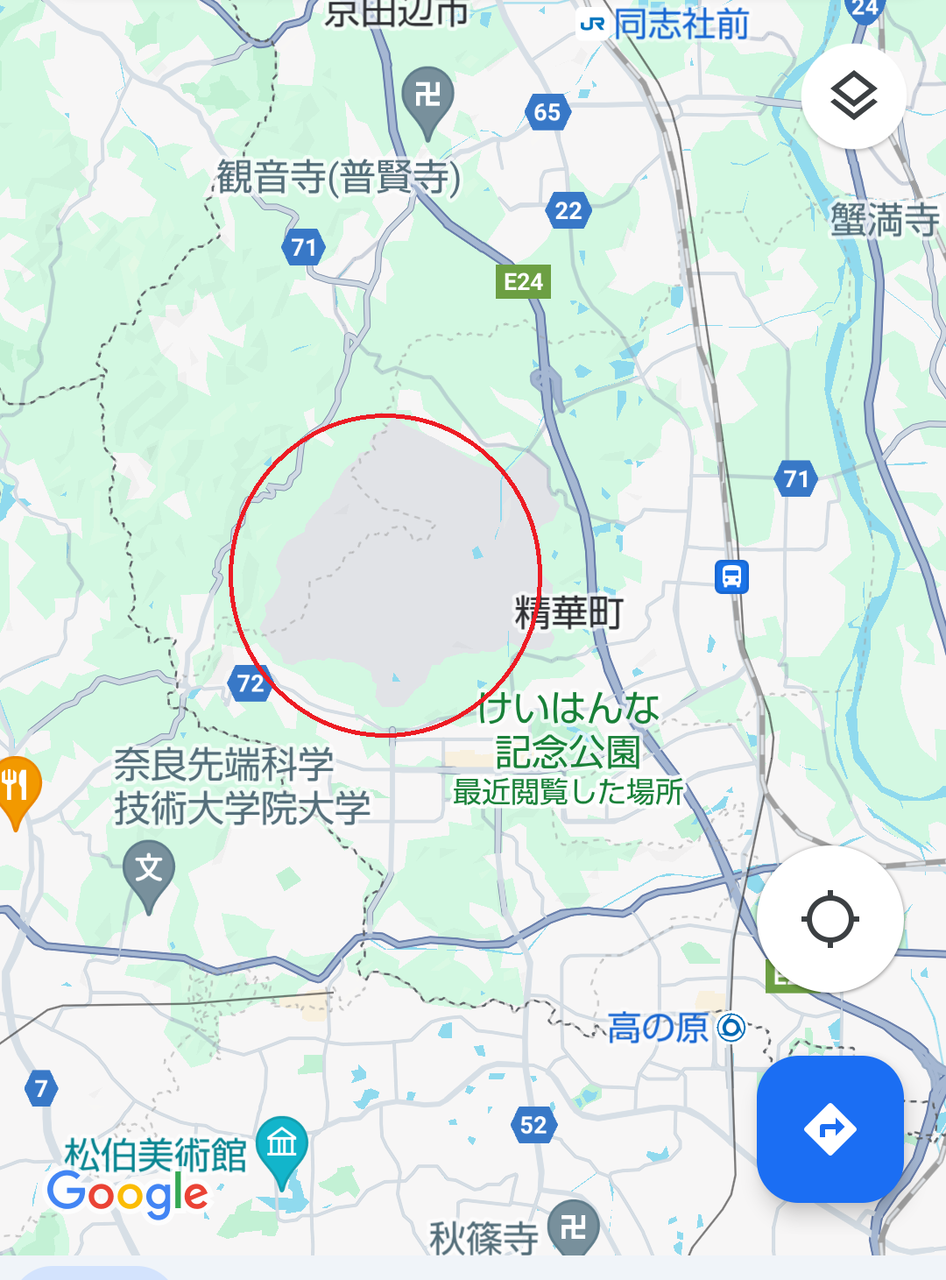 この「祝園弾薬庫自衛隊弾薬庫基地見学と相談会」ではフィールドワークも行われ、祝園弾薬庫の周辺を車でぐるっと1周している。南側にはニュータウンが広がるが、ここは昨年施行された「土地利用規制法」の規制範囲にはいる…。分屯地の面積は約470ヘクタール(東京ドーム100個分)で、精華町の面積の1/6を占める。弾薬庫は北の京田辺市にもまたがって広がっている。