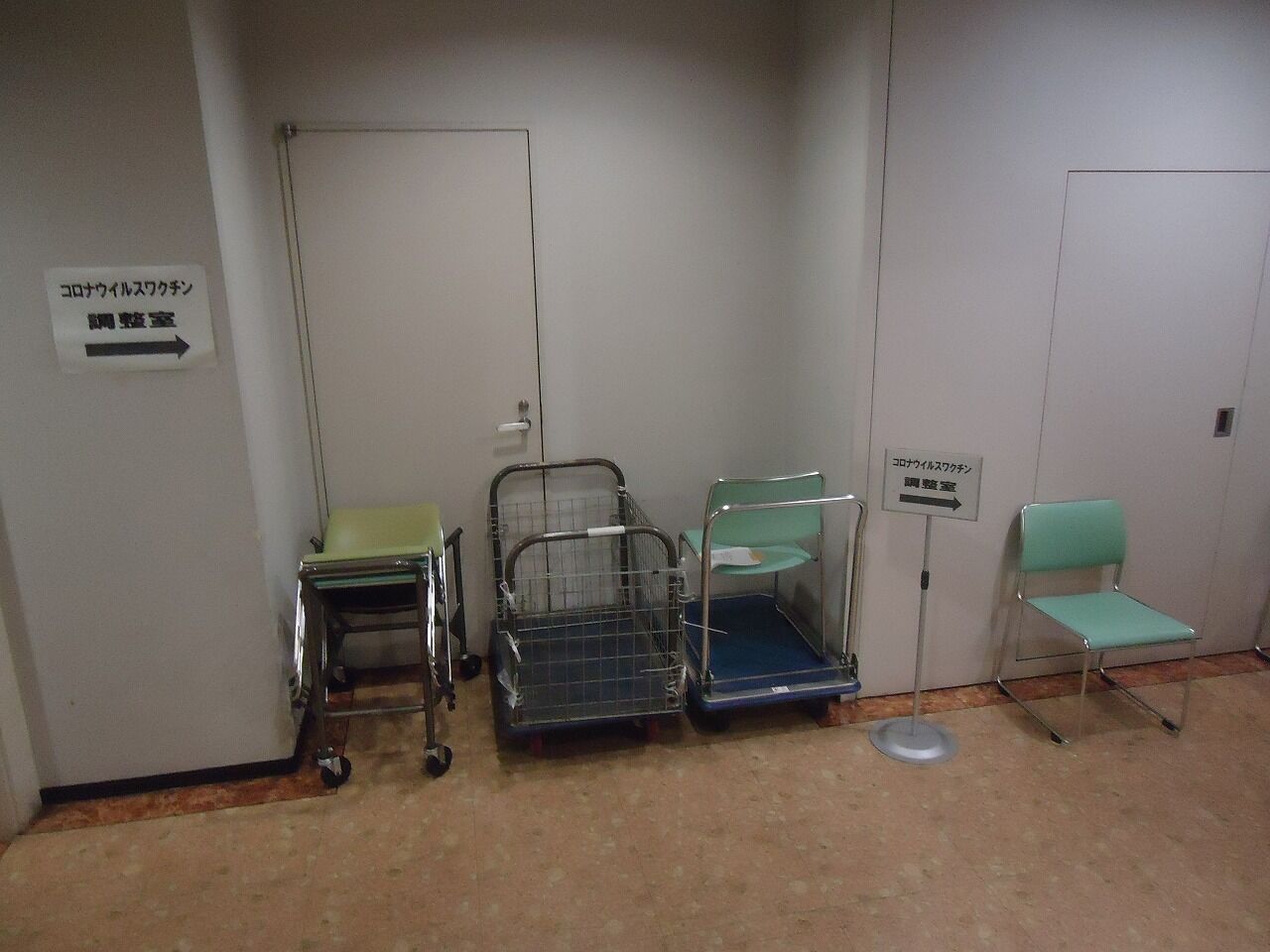 階段で地下に降りて見ると、コロナワクチン相談室の案内があるが、単なる地下会議室であった。