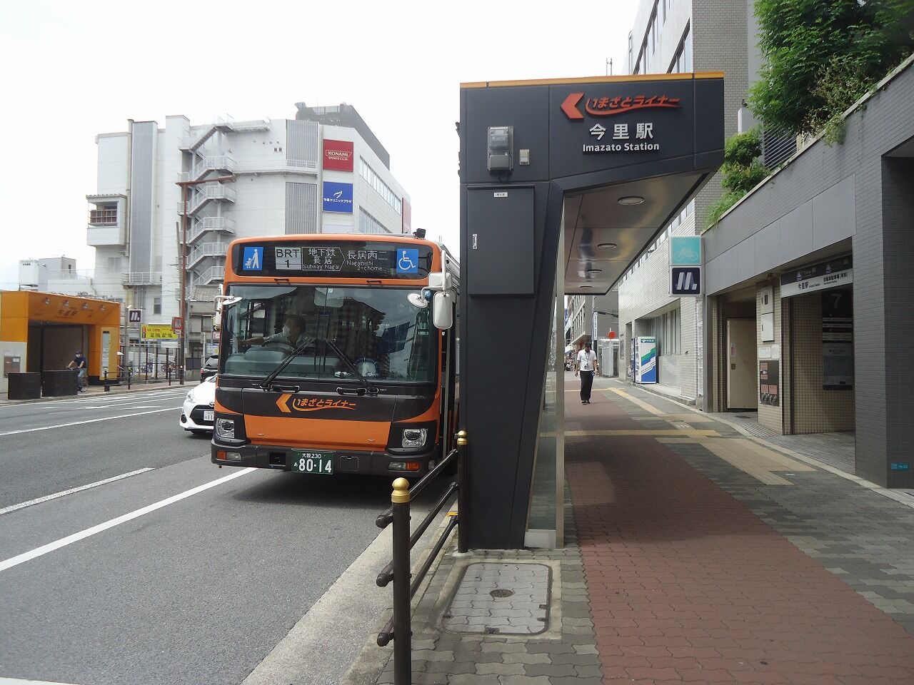 地下鉄の7番出口に隣接して、こんなバス停でいまざとライナーが出ている。